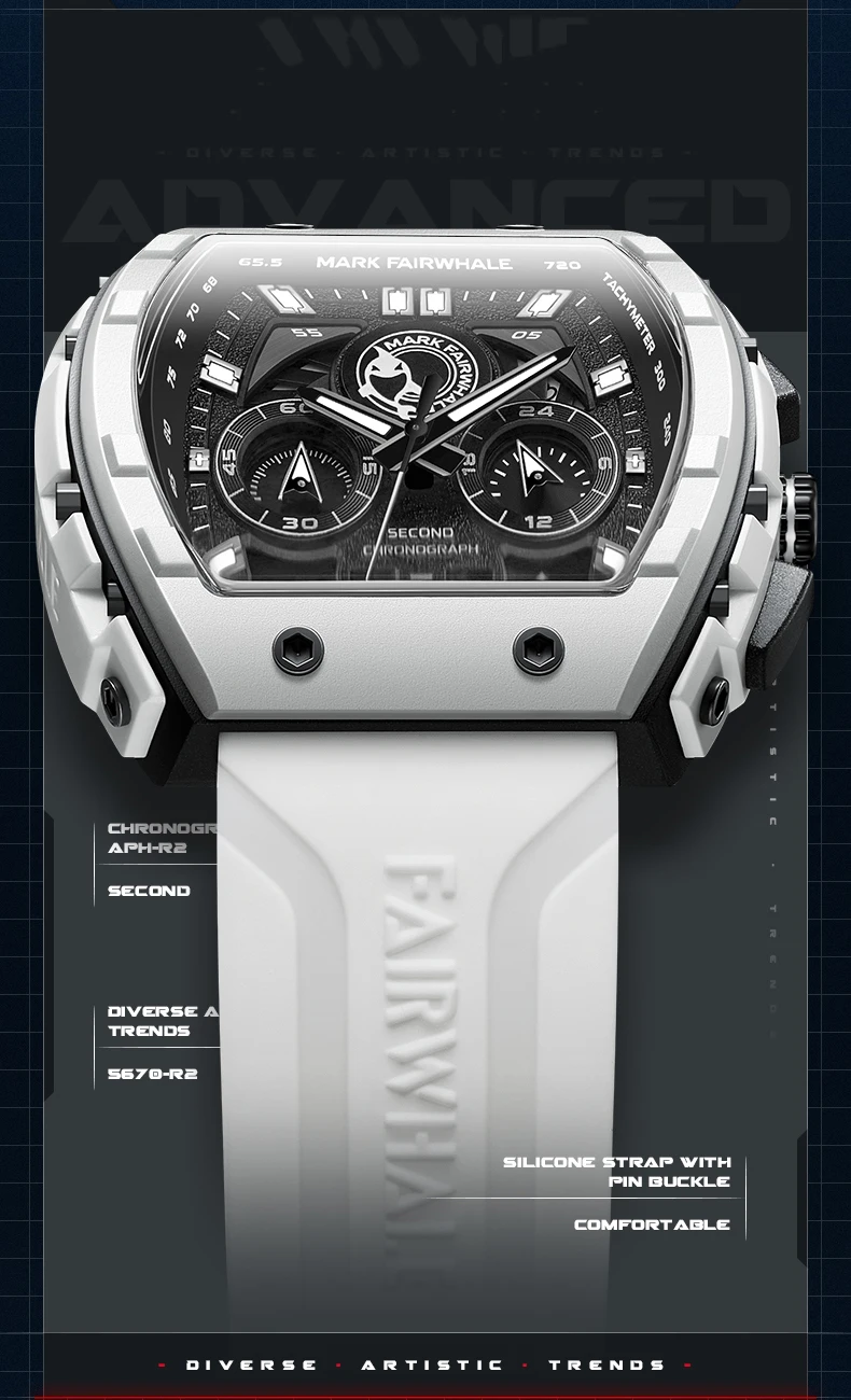Inspirado no cockpit de um supercarro, o Relógio Monza é uma máquina de precisão para quem vive em alta velocidade. Sua caixa escultural em formato tonneau e o mostrador multi-camadas não apenas exibem o tempo, mas também uma atitude. Cada detalhe, do cronógrafo de alta frequência à pulseira de polímero flexível, foi projetado para performance e impacto visual. Monza é mais que um relógio: é a adrenalina materializada no seu pulso.