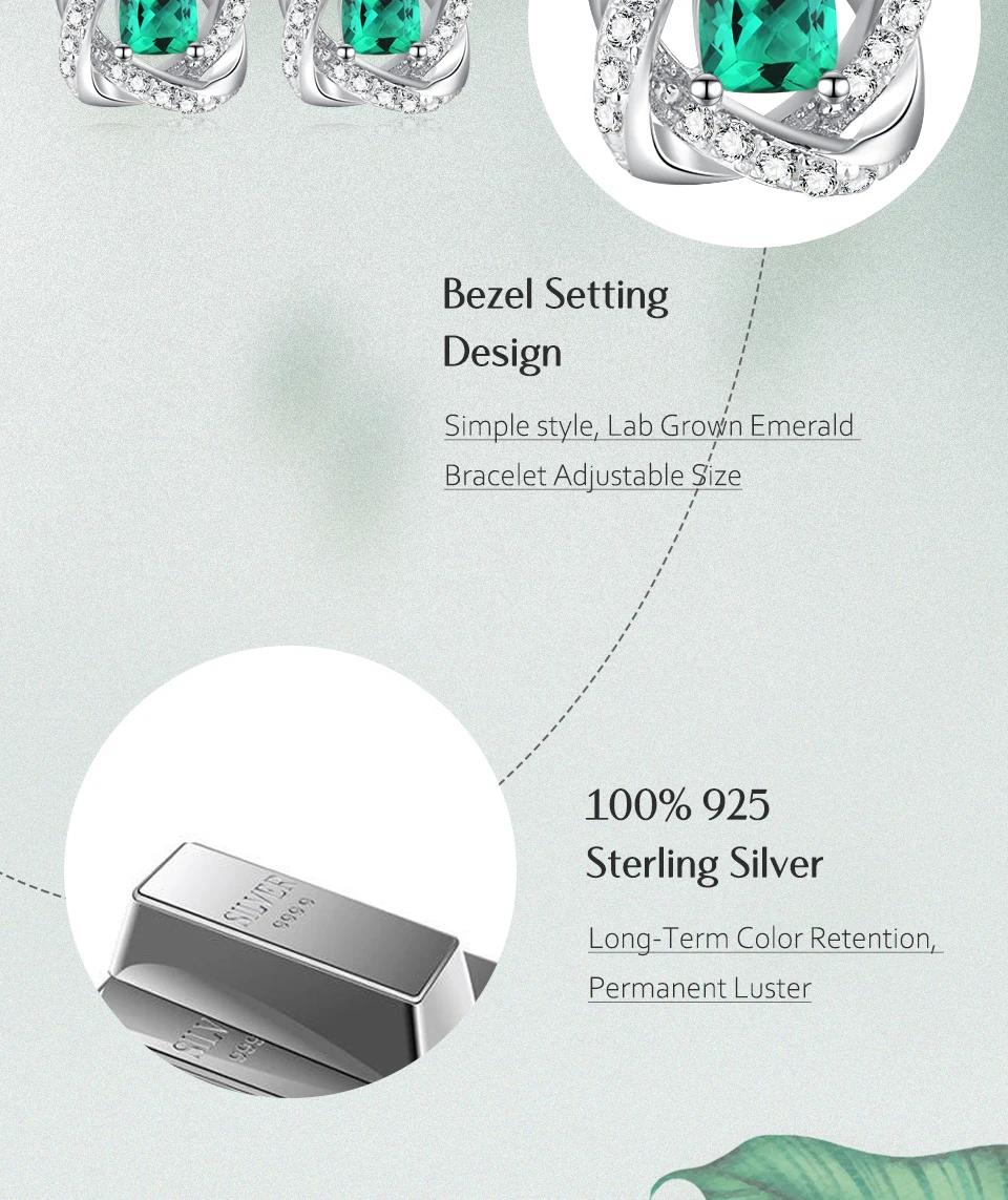 • Pedra principal: Esmeralda moissanita criada em laboratório (lapidação cushion de 4.0mm, classificação VVS1~VS1).