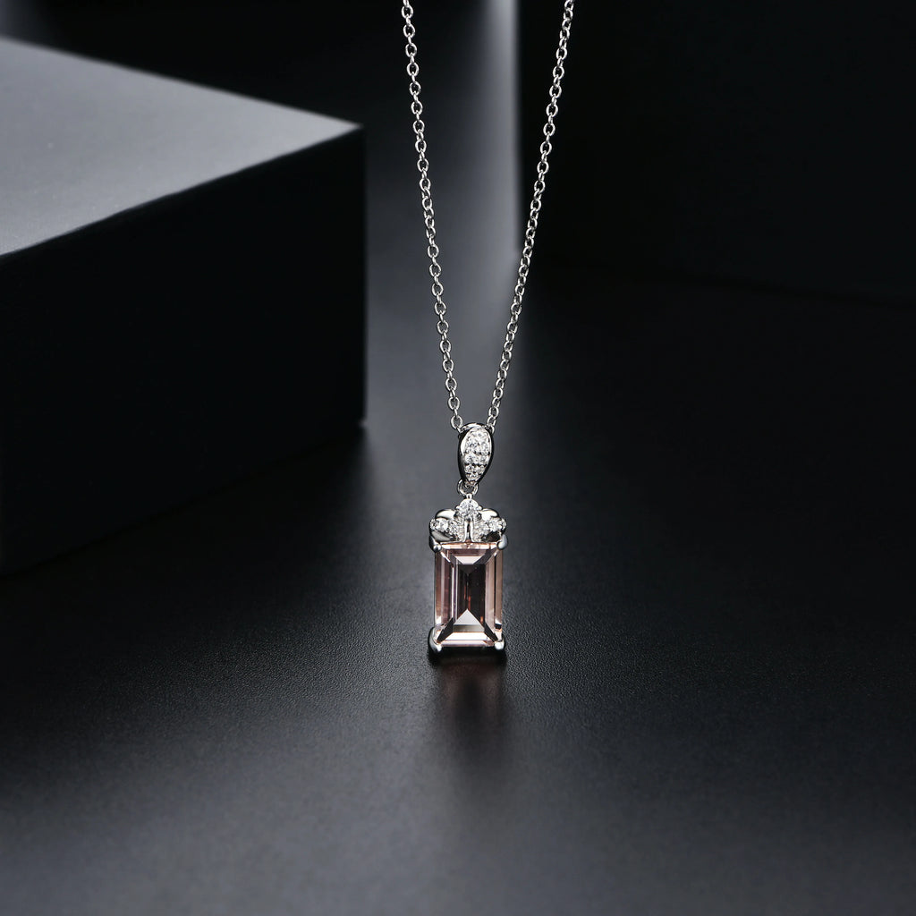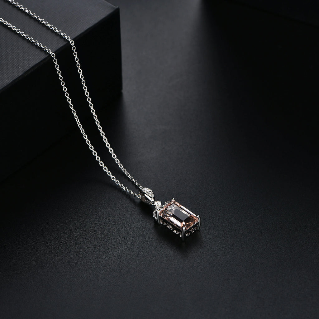 ATTAGEMS 2024 Luxury Baguette Cut 11*7 925 Sterling Silver Morganite Necklace for Women With Certificed High Quality New Jewelry