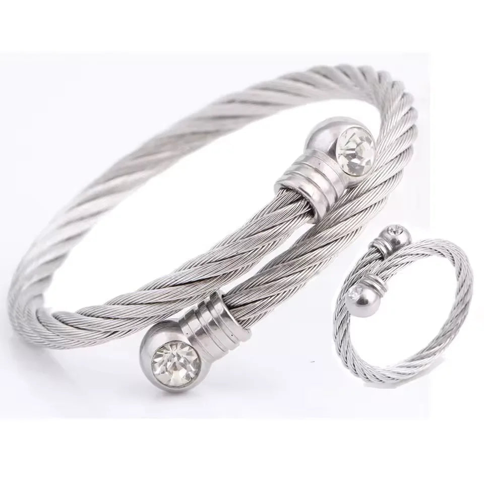 Sinergia Perfeita: Um conjunto de bracelete e anel que pode ser usado junto para um look de impacto ou separado para versatilidade.