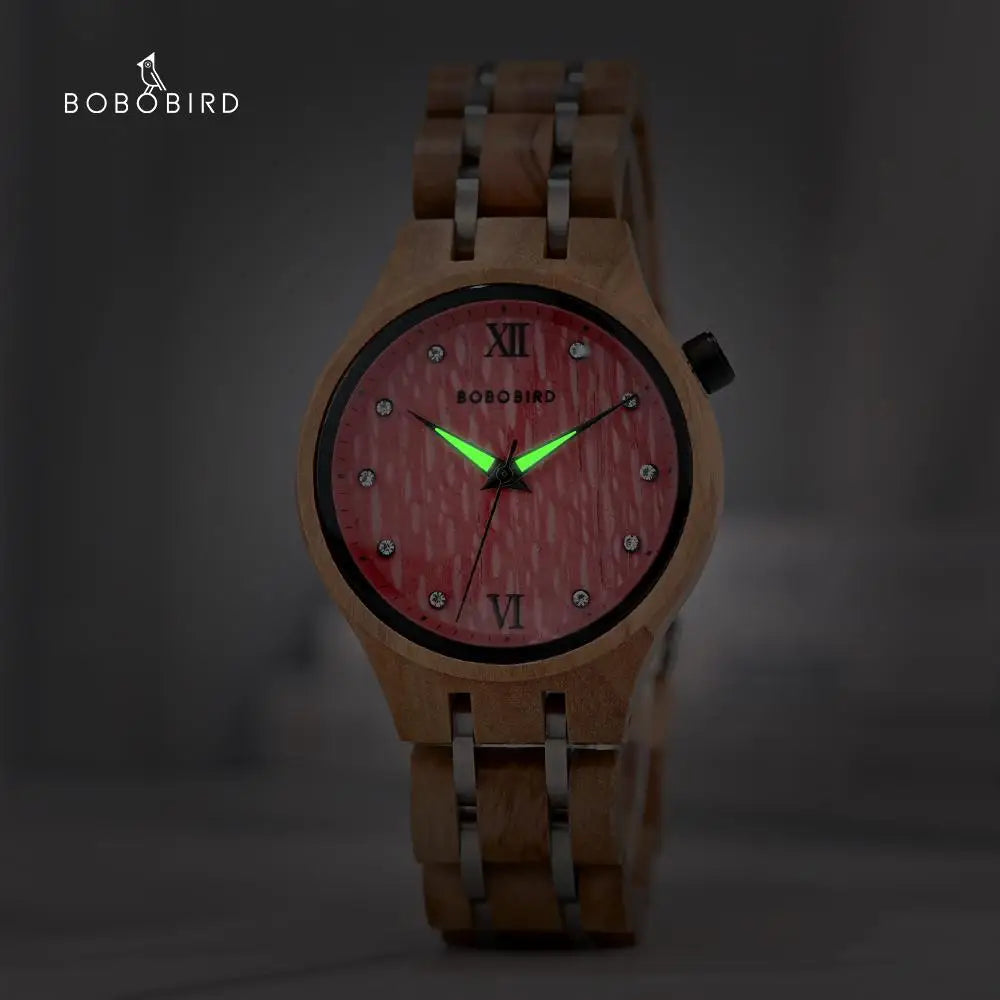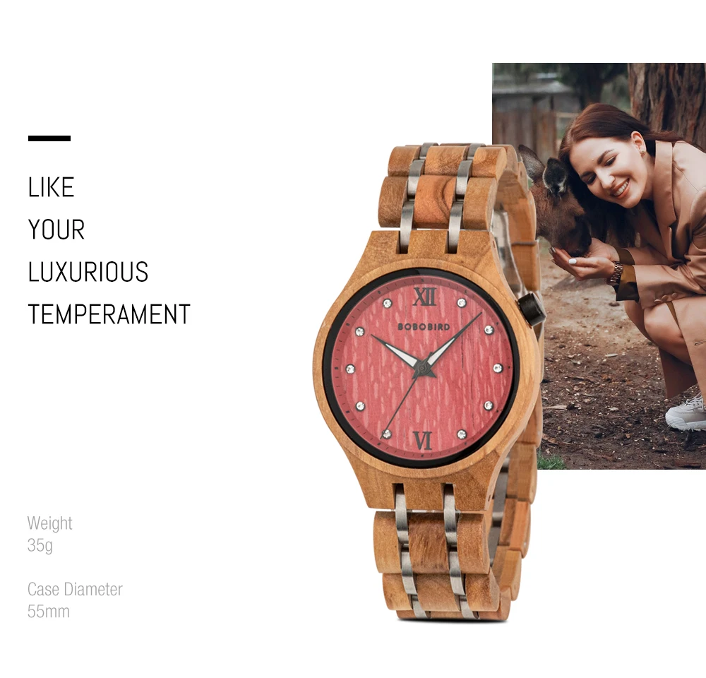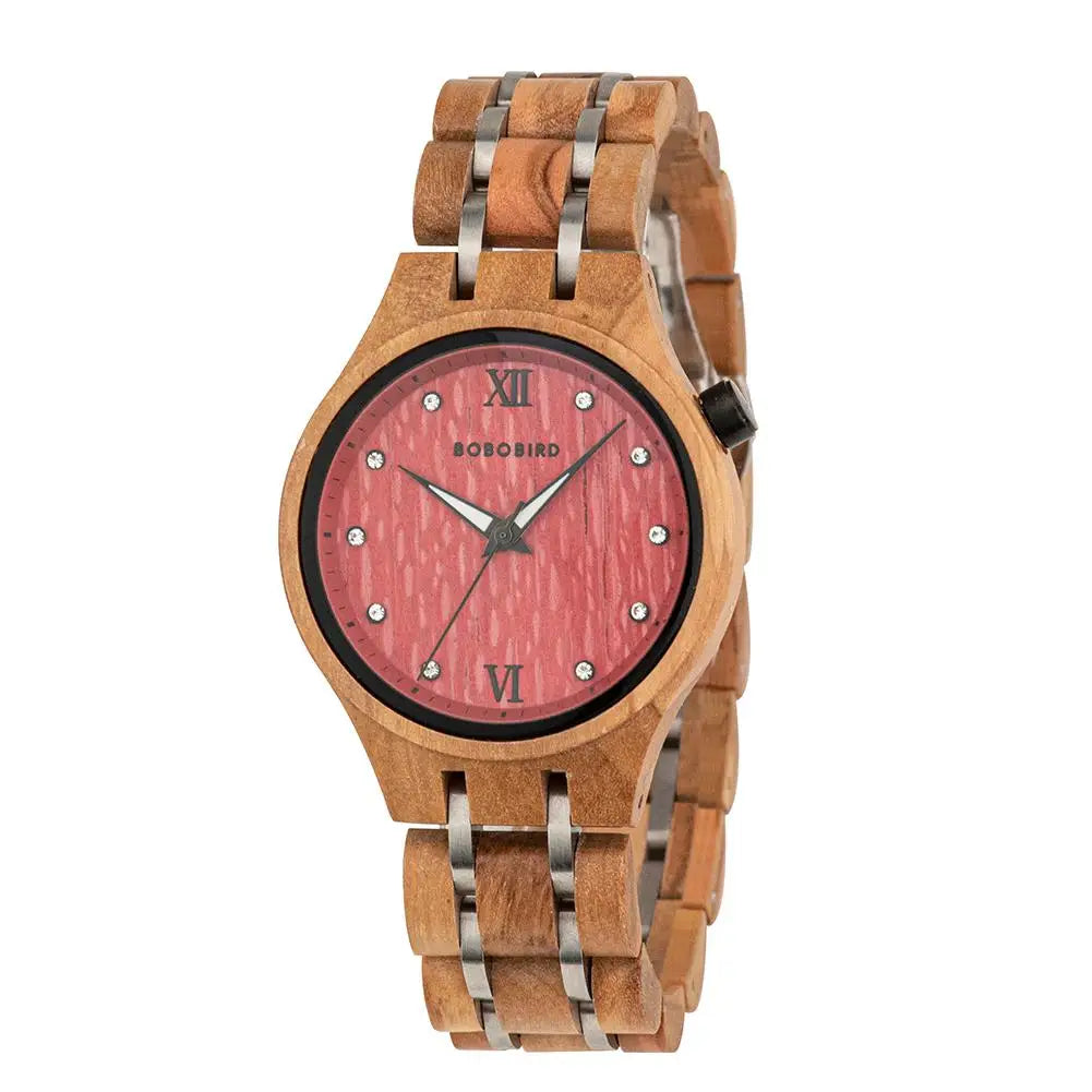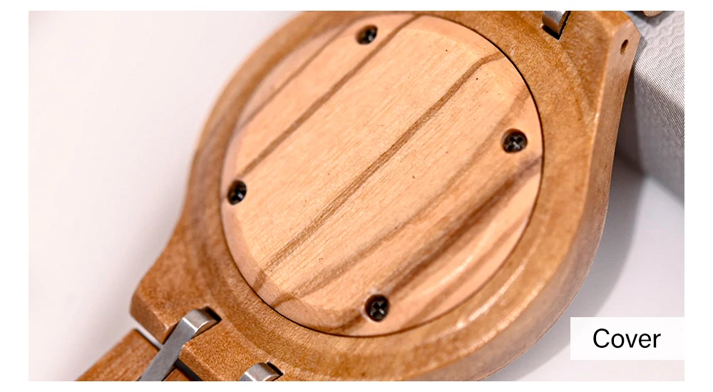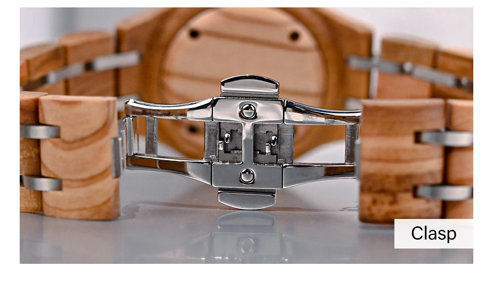 Material da Caixa e Pulseira: Madeira Natural com elos em Aço Inoxidável