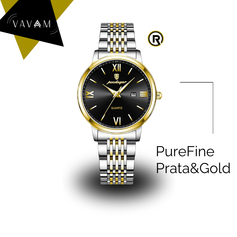 Detalhes de Luxo: Ponteiros luminosos para visibilidade no escuro e um vidro de alta resistência a riscos.