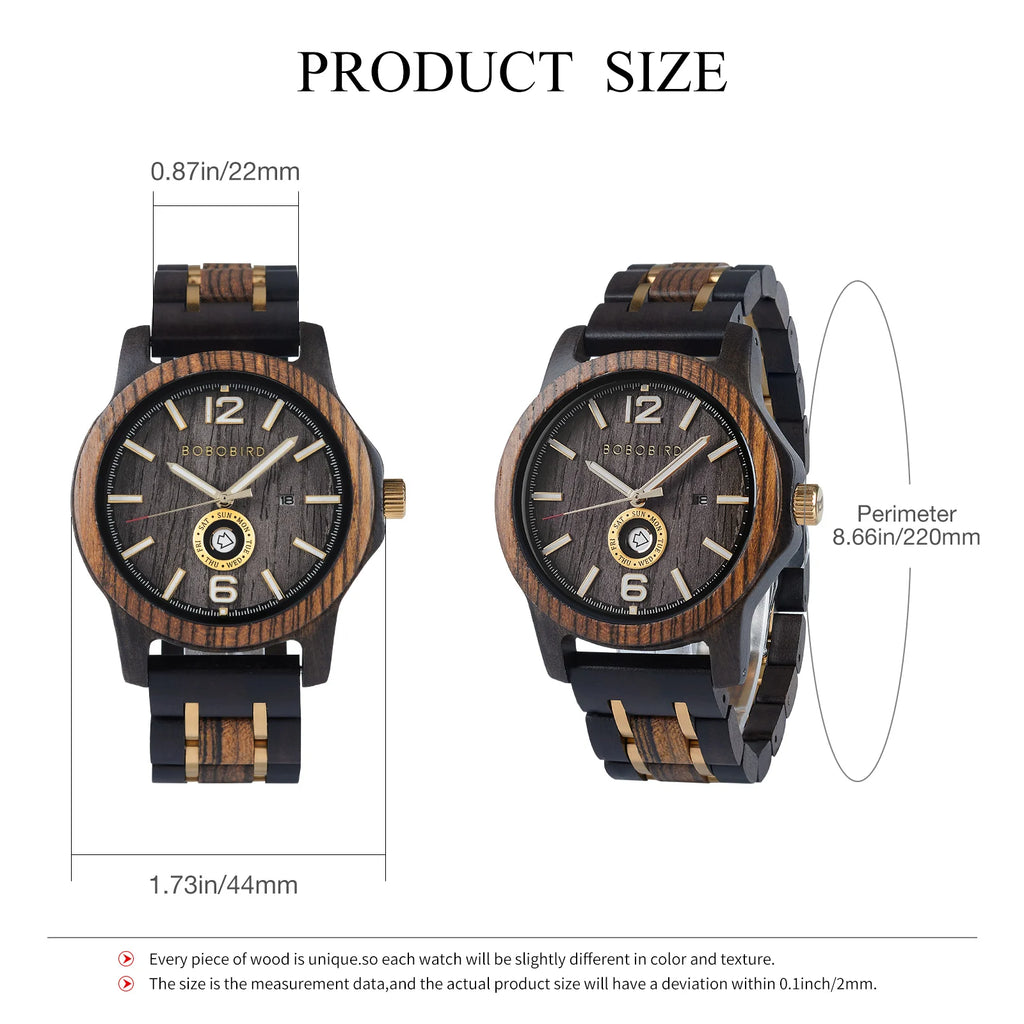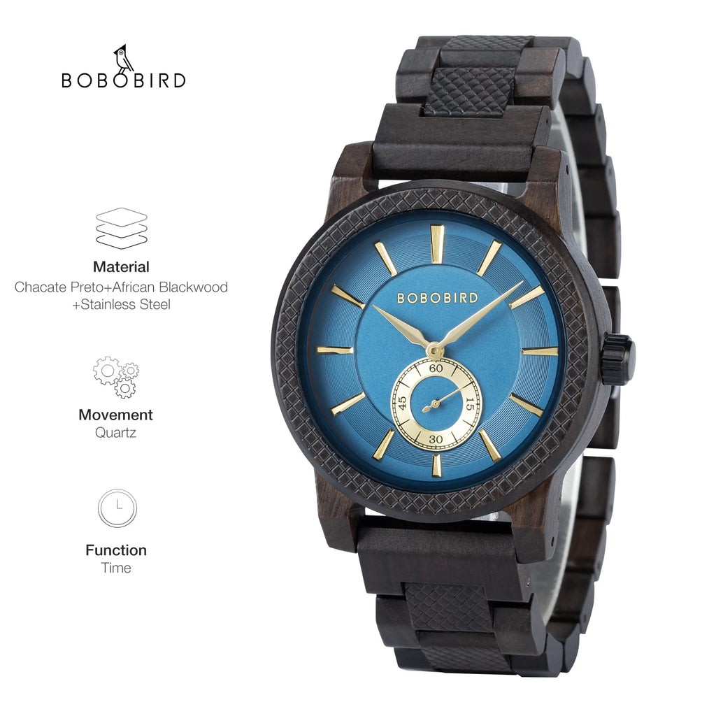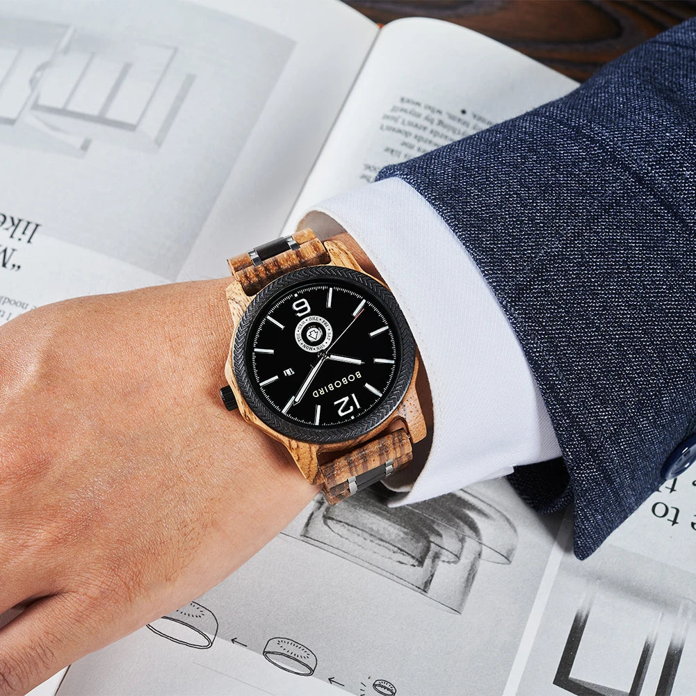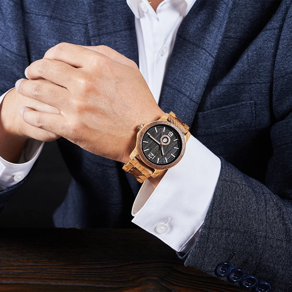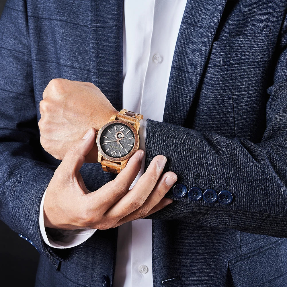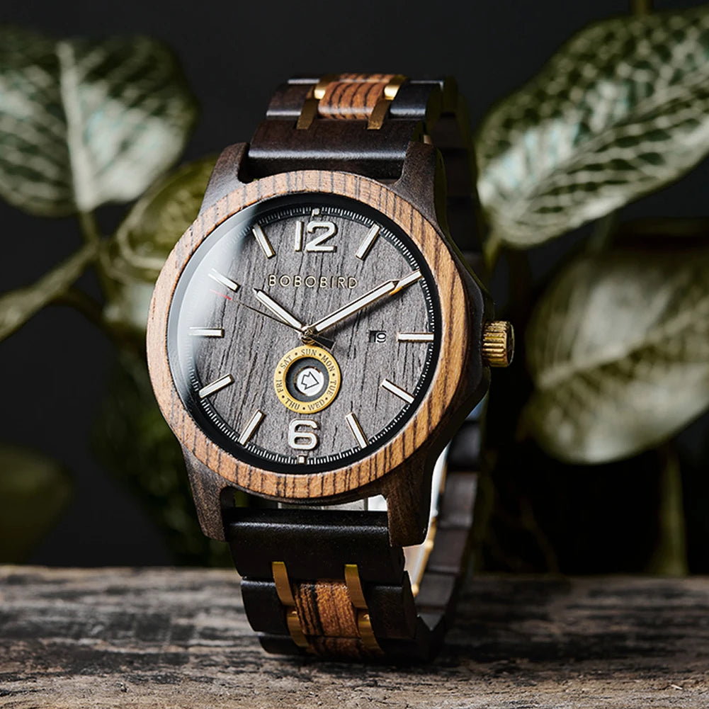 A leveza do relógio reflete o equilíbrio perfeito entre estilo e conforto, enquanto a escolha da madeira destaca sua conexão com a natureza. Cada detalhe é projetado para oferecer uma experiência exclusiva, transmitindo uma sensação de autoridade e sofisticação.