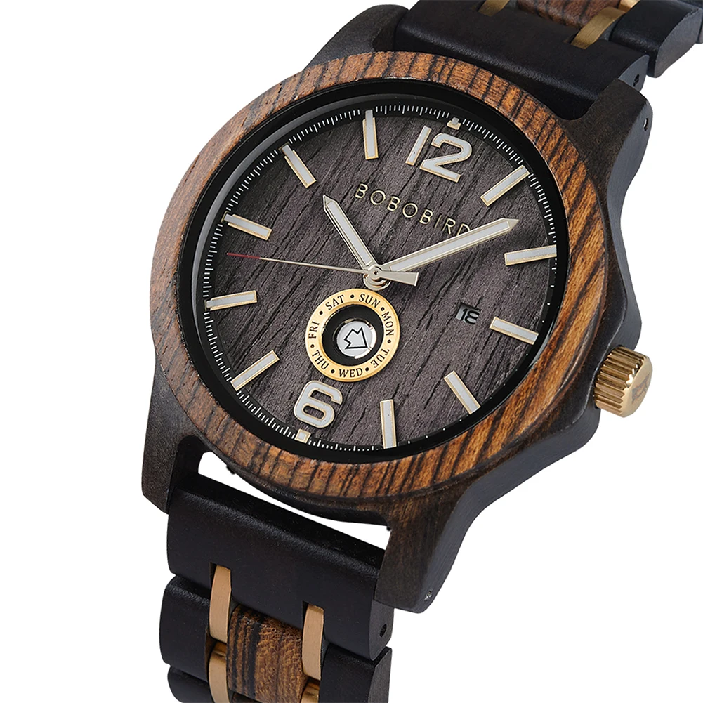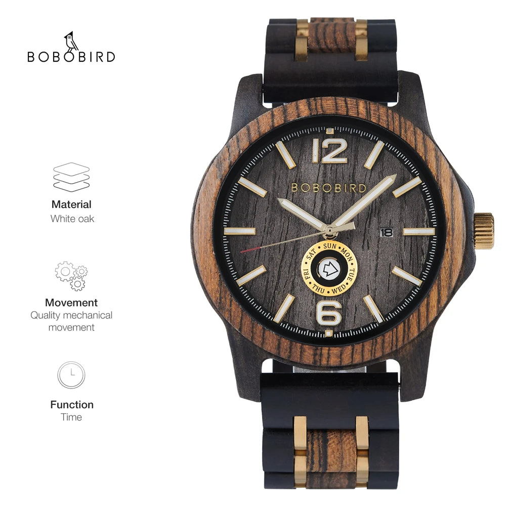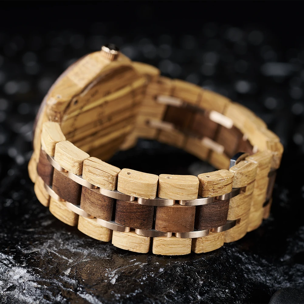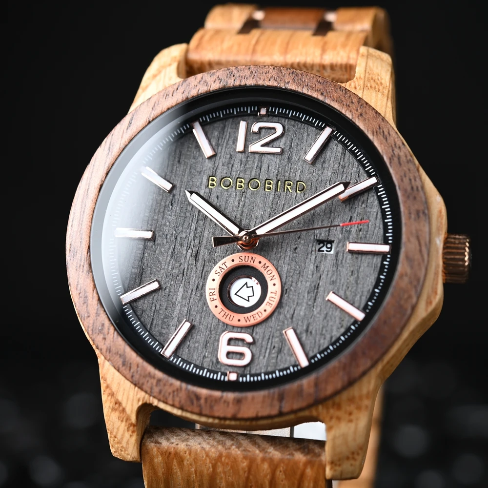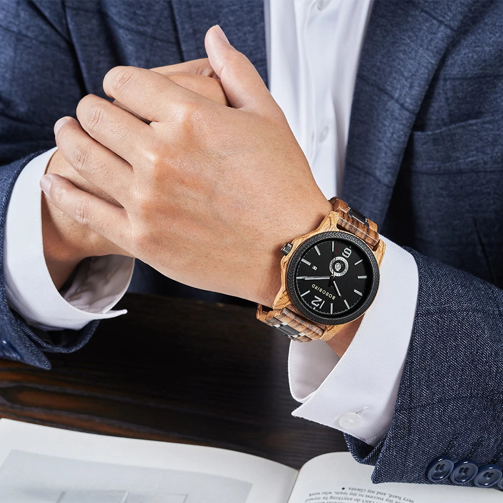 A leveza do relógio reflete o equilíbrio perfeito entre estilo e conforto, enquanto a escolha da madeira destaca sua conexão com a natureza. Cada detalhe é projetado para oferecer uma experiência exclusiva, transmitindo uma sensação de autoridade e sofisticação.