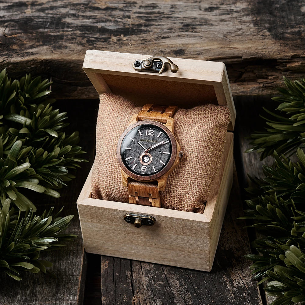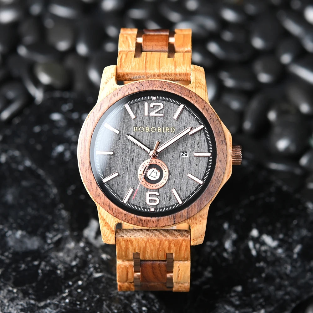 Com um design distinto e materiais cuidadosamente selecionados, este relógio não é apenas uma peça de pulso, mas uma manifestação de estilo que perdura. Abrace a harmonia da natureza com nossa coleção soberana de relógios de madeira para homens, elevando seu visual a novas alturas de distinção.