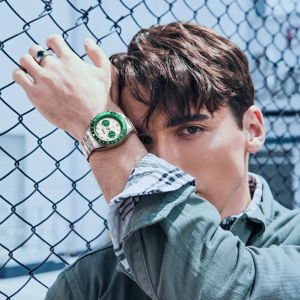 Design de Cronógrafo Atemporal: Funcionalidade e estética inspiradas nos grandes clássicos da relojoaria esportiva de luxo.