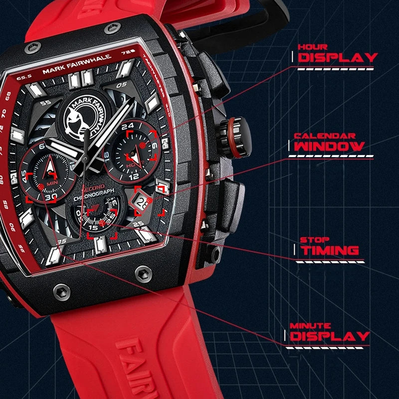 Inspirado no cockpit de um supercarro, o Relógio Monza é uma máquina de precisão para quem vive em alta velocidade. Sua caixa escultural em formato tonneau e o mostrador multi-camadas não apenas exibem o tempo, mas também uma atitude. Cada detalhe, do cronógrafo de alta frequência à pulseira de polímero flexível, foi projetado para performance e impacto visual. Monza é mais que um relógio: é a adrenalina materializada no seu pulso.